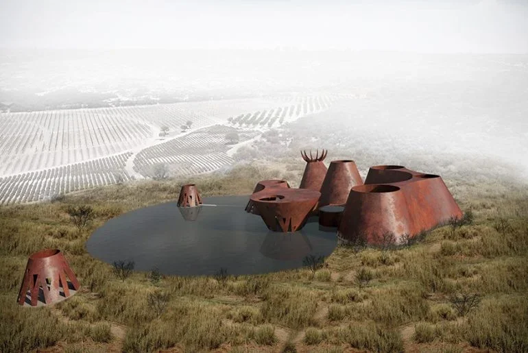 La Vinícola OMUN, diseñada en colaboración con Alejandro D’Acosta, trasciende la función productiva del vino para convertirse en una pieza arquitectónica integrada al paisaje. Inspirada en la geometría sagrada y los ciclos naturales, su estructura circular y su orientación solar optimizan energía y ventilación. Construida en ferrocemento y envuelta en una piel de bambú, la vinícola combina innovación técnica con sensibilidad artesanal, logrando una armonía entre naturaleza y arquitectura.